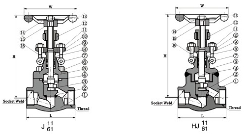 鍛鋼承插焊截止閥標(biāo)準(zhǔn)材質(zhì)明細(xì)表