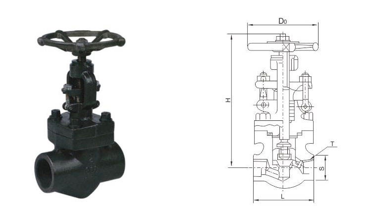 鍛鋼承插焊截止閥主要尺寸及重量