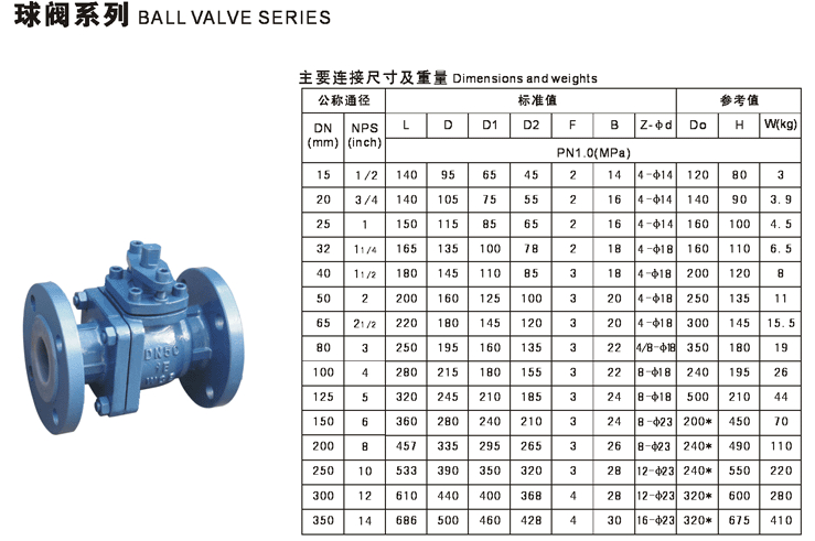 襯四氟球閥基本型號